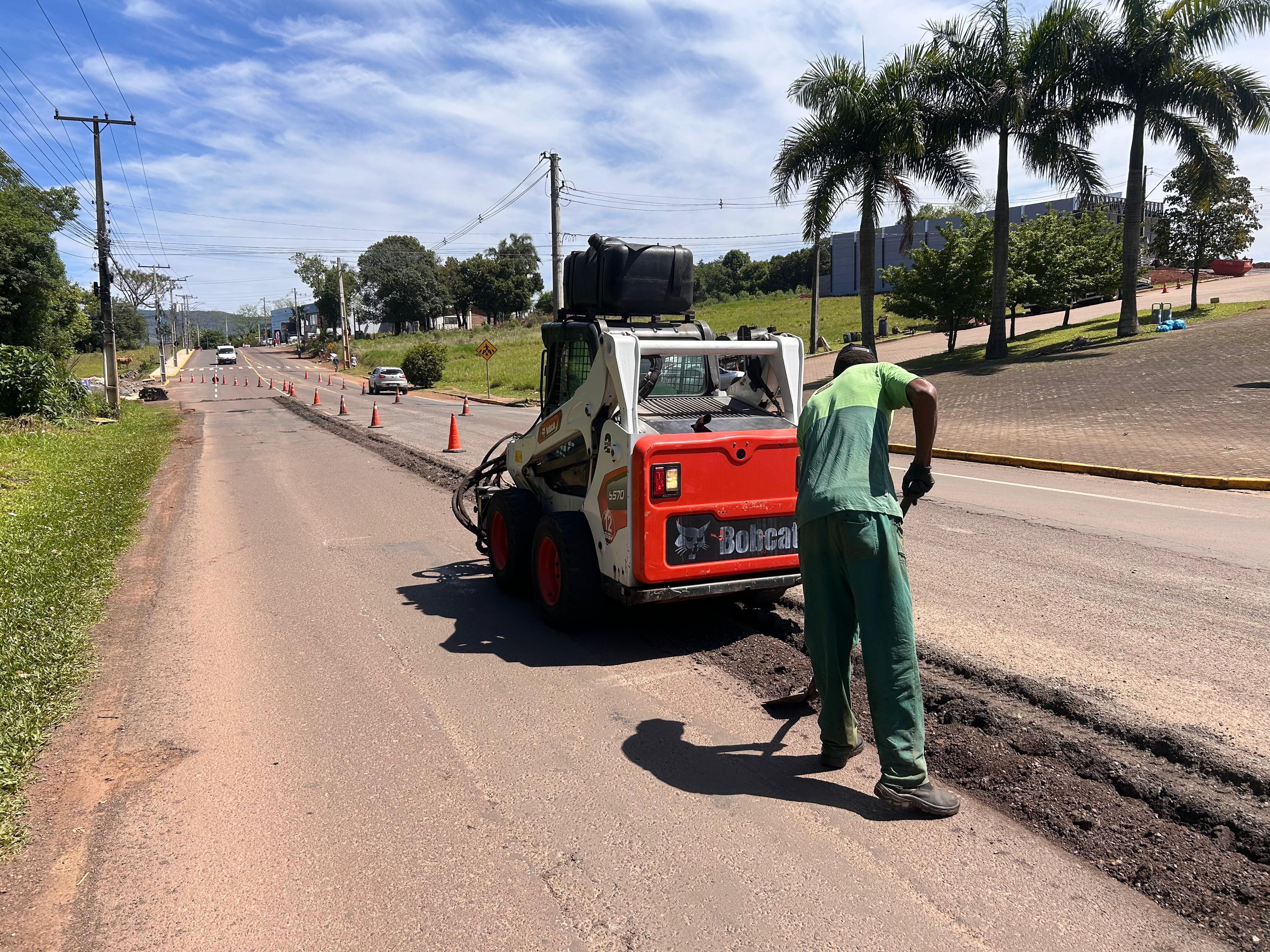 Prosseguem as obras de recuperação de trecho da Av. Pedro Theobaldo Breidenbach em Conventos