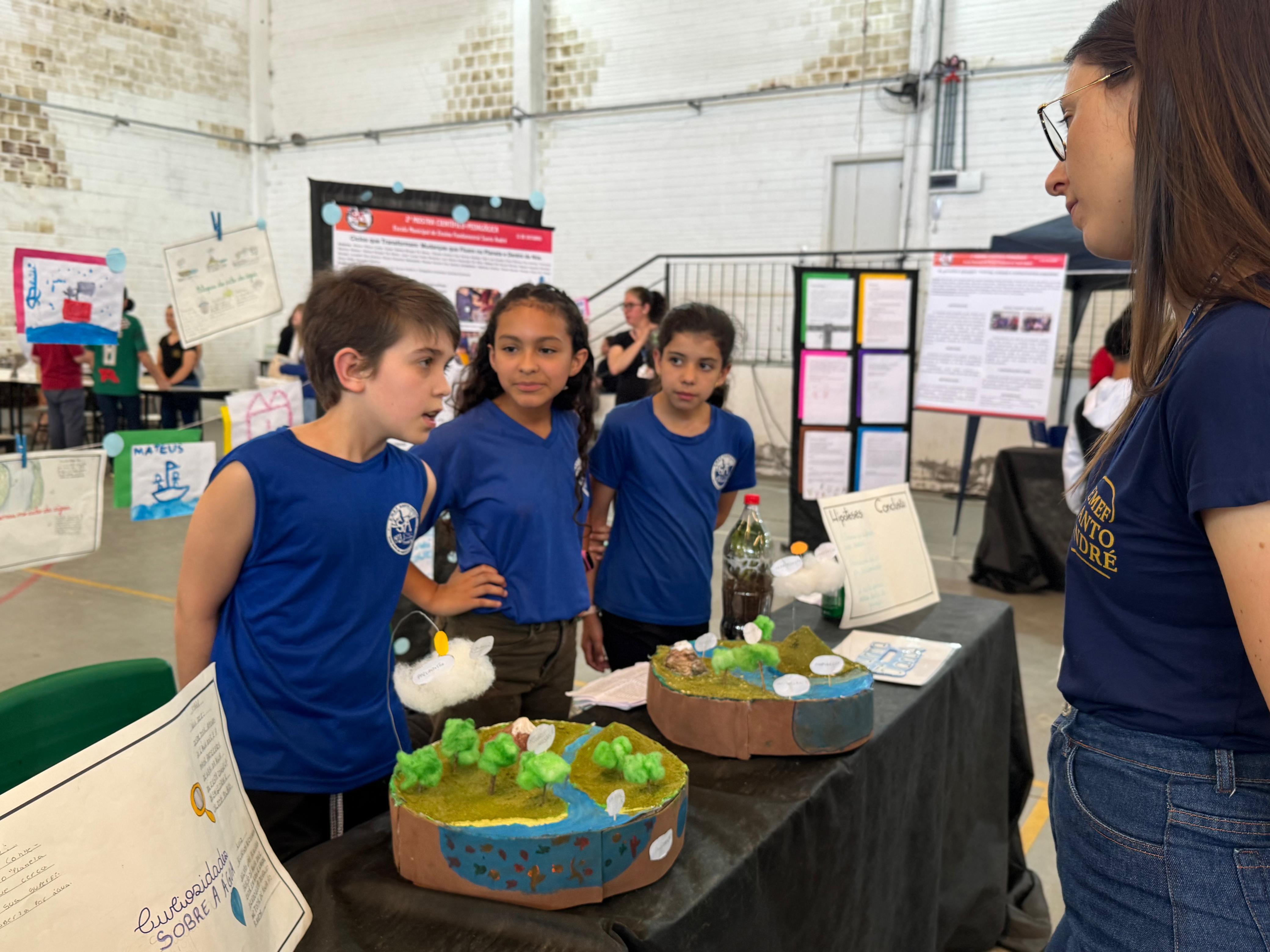 Os alunos do 5º ano apresentaram o trabalho “Água em transformação: o caminho do rio Taquari até às nossas casas”. O tema, segundo eles, surgiu da curiosidade sobre a origem da água que chega até as casas e entender esse processo.
