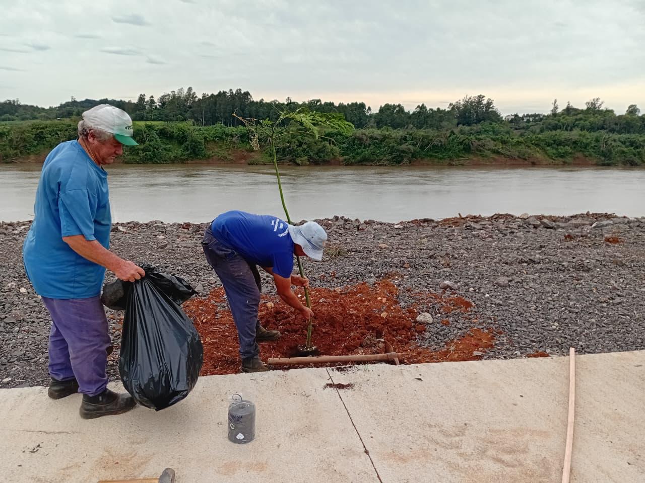 Prefeitura de Lajeado executa o plantio de 45 árvores na Rua Bento Rosa às margens do Rio Taquari
