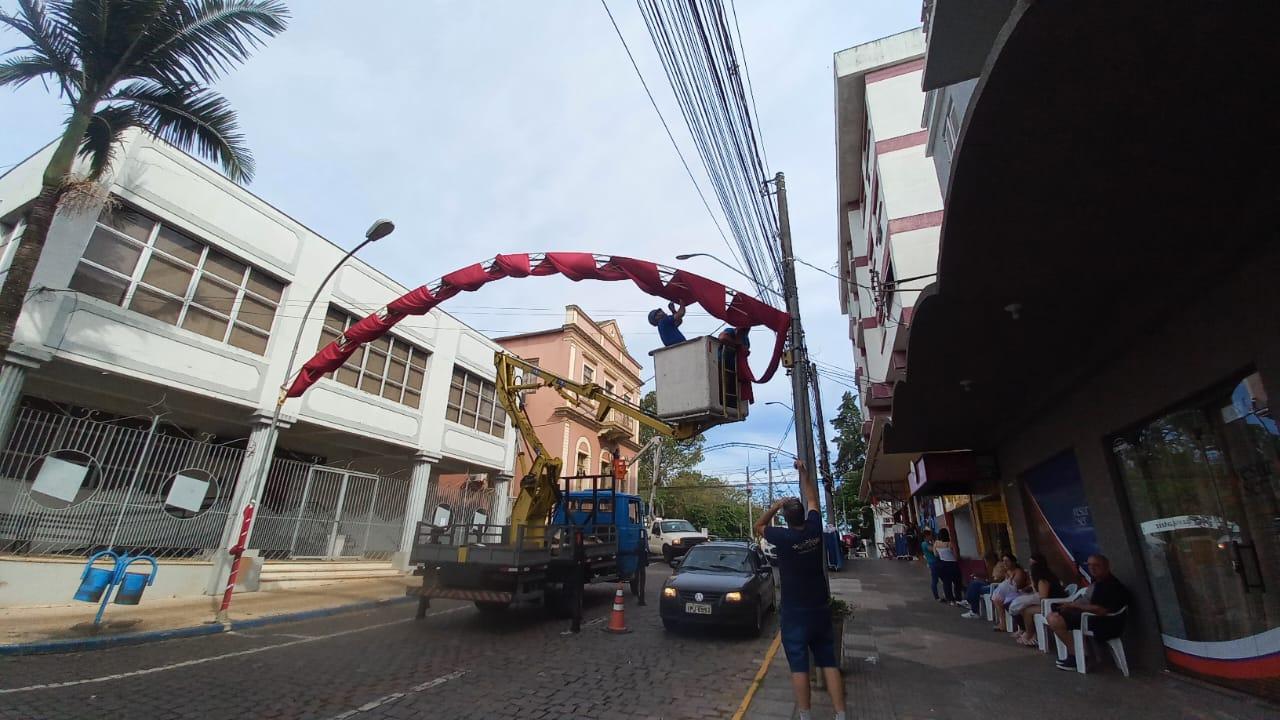 A Prefeitura de Lajeado deu início, nesta semana, à instalação da decoração natalina para a programação do Natal no Coração 2025. Os primeiros locais a receberem os ornamentos foram a Casa de Cultura e os arcos da rua Júlio de Castilhos, no Centro. Os 44 arcos de metal existentes na rua Júlio de Castilhos serão revestidos com fitas de veludo, tecidos, cordões de LED, e laços centralizados no arco, sendo intercalados pelas cores vermelho e branco.