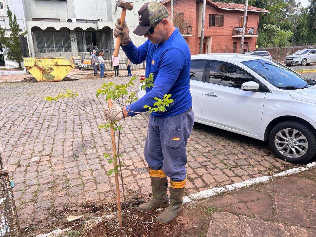 Prefeitura de Lajeado planta árvores nativas na Rua Júlio de Castilhos