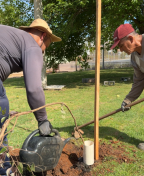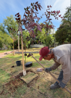 Após o plantio, a Sesu segue com cuidados de irrigação e manutenção para o desenvolvimento saudável das mudas.