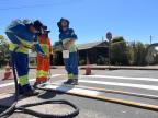 Simultaneamente, está em andamento a manutenção das faixas de segurança no centro da cidade, com a aplicação de um novo capeamento asfáltico para posterior repintura das faixas de segurança na Rua Júlio de Castilhos e nas vias que cruzam a rua principal. O serviço começou dias atrás com a fresagem do asfalto das faixas de segurança e, agora, avança para a etapa de novo capeamento asfáltico nos mesmos locais onde já havia sinalização. Somente na Rua Júlio de Castilhos e em suas transversais serão refeitas 22 faixas de segurança que apresentavam desgaste no asfalto e na pintura.
