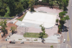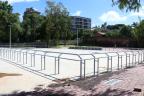 O piso de concreto armado foi estendido para além do cercado da pista, criando uma área destinada aos iniciantes e ao preparo dos patinadores. O espaço também conta com bancos para a colocação dos patins.