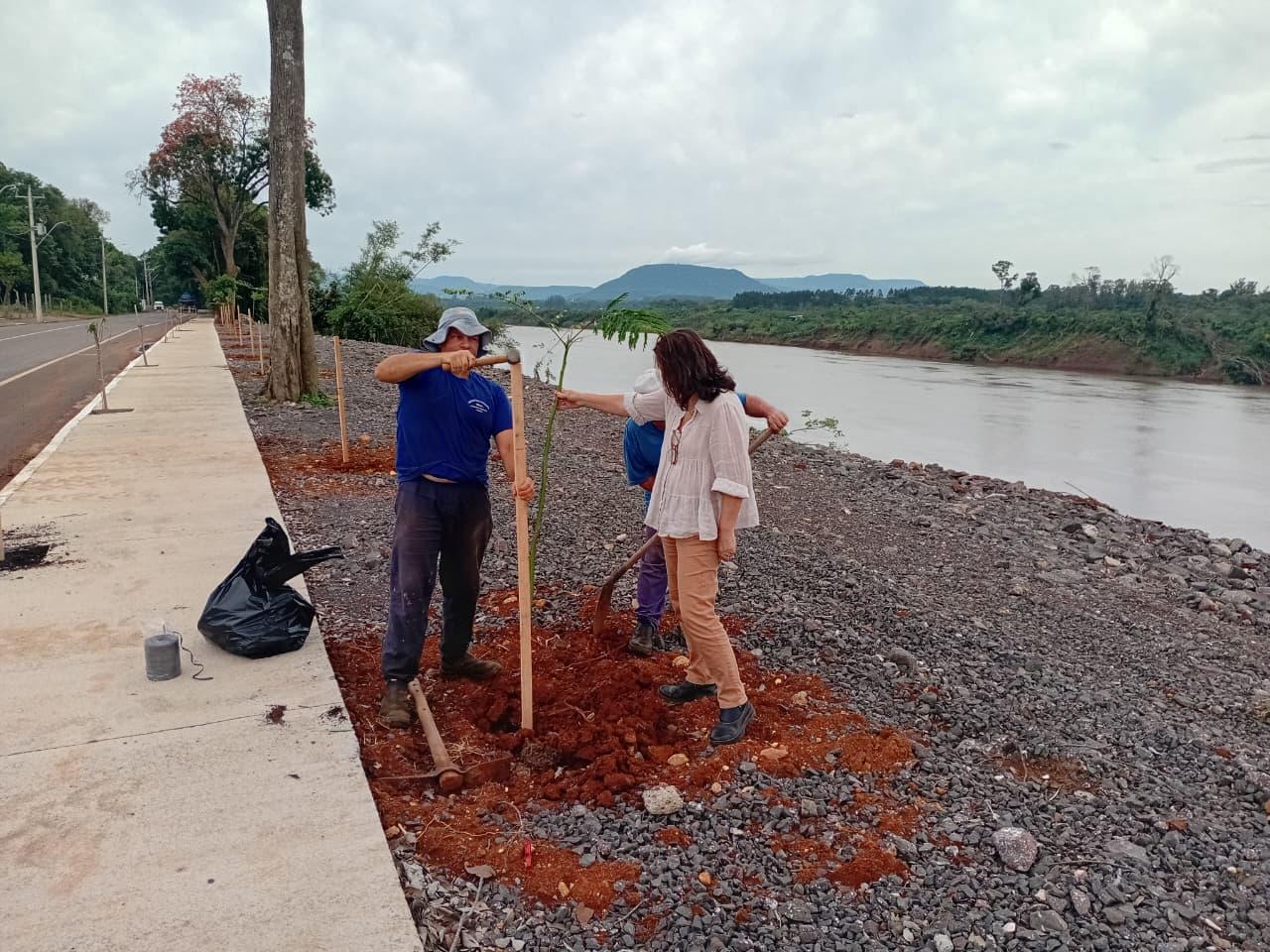 Prefeitura de Lajeado executa o plantio de 45 árvores na Rua Bento Rosa às margens do Rio Taquari