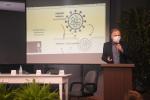 Em seguida, o Professor Dr. Luís Fernando Kehl apresentou de que forma o vírus se comporta e age no organismo, por meio de gráficos e desenhos ilustrativos. Após, foi a vez do Dr. Ramatis Birnfeld de Oliveira, que abordou a farmacologia dos medicamentos na Covid-19, com foco nos medicamentos cloroquina e hidroxicloroquina. Ramatis expôs os mecanismos dos remédios, de que forma podem contribuir para evitar a replicação do vírus no organismo e os cuidados necessários com os efeitos adversos.